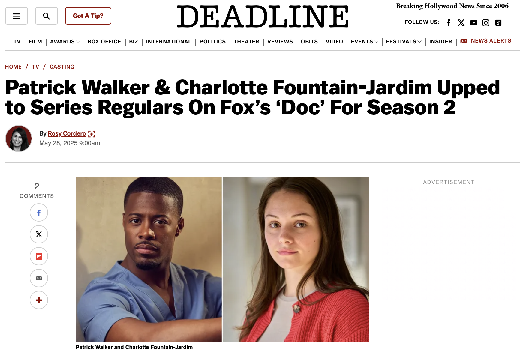 A sua continuidade na segunda temporada de “Doc” (FOX) foi notícia na imprensa norte-americana