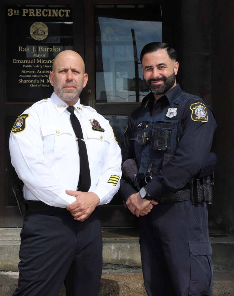 Foto: JORNAL LUSO-AMERICANO | O agente Hugo Dias e Maik Alexandre, o capitão luso-americano da 3.ª esquadra da Polícia de Newark